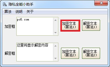 在【加密框】输入文本,然后选择加密算法加密。