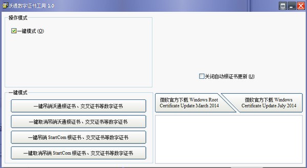可以一键吊销/取消吊销沃通、StartCom根证书、交叉证书、中级证书、终端用户证书。