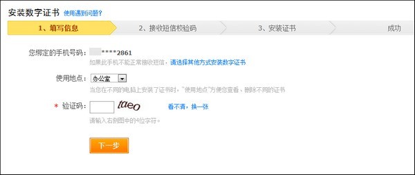 1)在安装数字证书选项时,选择【提交客服申请单】;