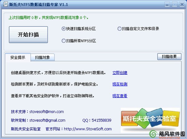 斯托夫NTFS数据流扫描专家是斯托夫安全实验室推出的一款用于扫描和查杀NTFS数据流的辅助工具,NTFS交换数据流是NTFS磁盘格式的一个特性,在NTFS文件系统下,每个文件都可以存在多个数据流,就是说除了主文件流之外还可以有许多其他的数据流寄宿在主文件流中。