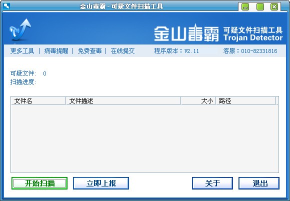 金山出品的可疑文件扫描工具。最新的木马捕捉工具,收集疑似木马程序!