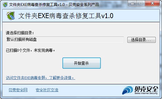 贝壳《文件夹EXE病毒查杀修复工具》可完美查杀“文件夹EXE”病毒,修复被感染文件夹,恢复文件!