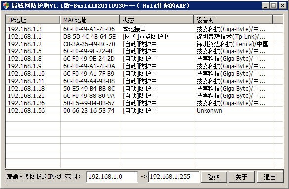 选择ip,点隐藏就可以了。。。小巧好用的局域网ARP防护软件