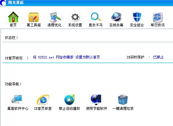 阳光e盾是一款绿色软件,您不需要支付任何费用。阳光e盾集成了IE主页保护、公益宣传、电脑节能、垃圾清理、木马查杀、在线杀毒、系统优化、安全类软件下载多项实用功能。当IE默认首页被恶意锁定无法手动修改IE首页,可以用软件恢复IE首页。