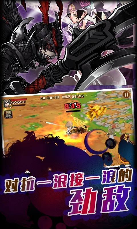 闯关三国游戏官方介绍闯关三国,结合3D ARPG及卡牌元素,让您能在三国的战场上跟强者决战。在「征讨模式」中,你可以亲自操纵武将上战场战斗。随着不断冲破不同的关卡,你可按照你战胜后所得到的卡牌,更换自己的战员,更可以招揽更多出色的战员,犹如跟随刘备的步伐,参与战争,一起堀起蜀国!每次出征,你都能选择三位武将及一位军师同行,你可在战斗时自由调换出战的武将,灵活运用不同的武将和武器,助你过关斩将!