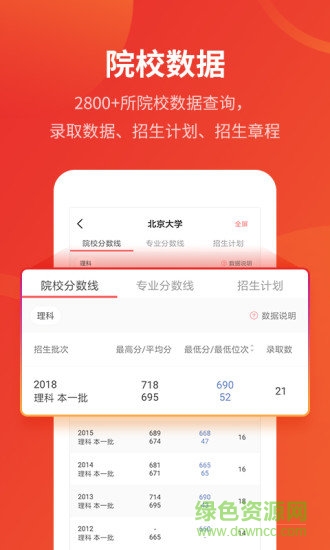 2.招生计划及分数线功能支持展开多方向数据;支持直接进入院校详情页查看。