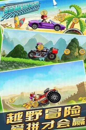 终极狂暴飞车是是一款卡通风格的赛车竞速手游,游戏中有多种操作模式和多种视角,多种车辆以及场景选择,关卡很丰富,全新的游戏画面,各种特技考验你的操作,舒适的操作手感,刺激的赛车竞速,完美的过弯体验!