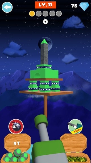 加农炮打击玩家可以使用大炮击中目标。有许多不同类型的大炮具有不同的威力,例如炸弹多发射击。要完成关卡,您需要销毁不同类型的目标。