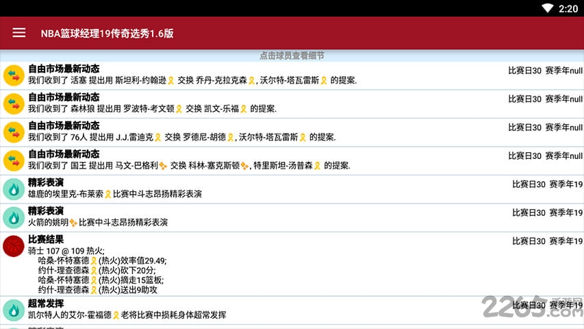 nba篮球经理19内购破解版简介这里有你最喜欢的NBA巨星,现今第一人詹姆斯,萌神库里,大胡子哈登等;你将近距离接触他们,和他们完成各种交易,组建最强大的阵容勇夺总冠军;文字风格的游戏玩法,虽没有震撼的比赛场景,但一样能够让玩家沉醉其中。游戏模式多样性,玩法丰富,普通模式,梦幻模式等等,难度不一等你挑战;针对各种不足和优势,详细的研究对手的情况,发挥己方的优势赢取胜利。