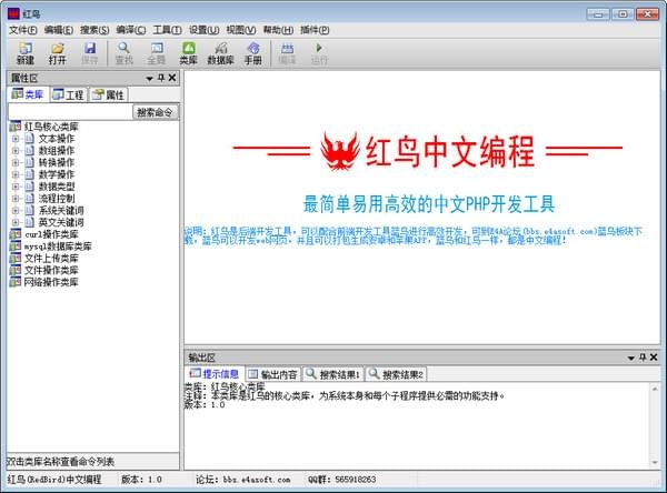 红鸟中文编程软非常不错的php开发工具中文界面简单实用,红鸟编程软件可以新建工程,也可以导入工程,调用本地代码进行编译,编译后可以打开PHP目录进行预览,具体的根据按钮指引操作就可以了,十分简单!