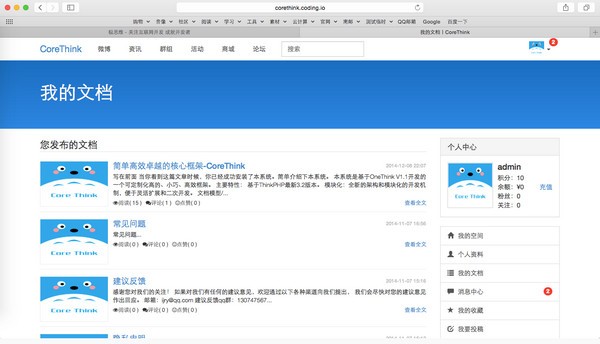 CoreThink 可以用来开发企业网站、门户网站、多用户博客、O2O商城、微信公众号第三方平台,你想到的它都能办到。
