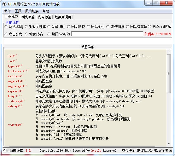 此软件基本上把原始DEDE模板上所有的标签都汇集了,而且陆续完善中…到时候你仿站就可以拥有此软件自然得心应手的只在上面盖代码了!