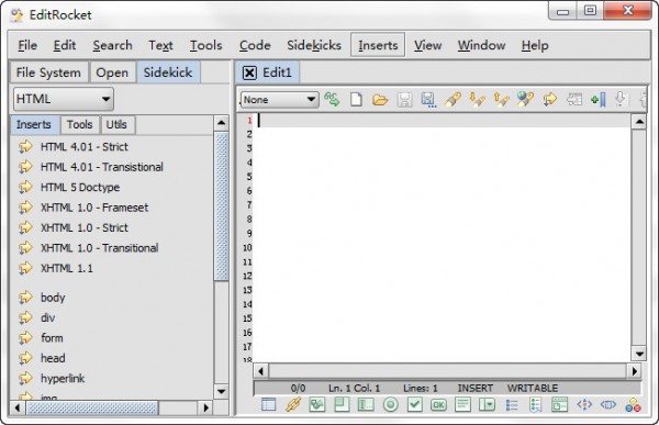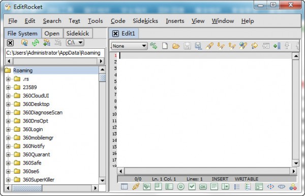 EditRocket是一个功能强大的代码编辑器,EditRocket支持超过20种语言,包括HTML , PHP和CSS ,java脚本,Python, Ruby, Perl, EditRocket包括许多工具,可帮助用户编写代码,诸多功能如语法高亮,代码创建和sidekicks ,导航,功能查询,代码和标记完成,正则表达式搜索和替换,支架和标签匹配, HTML格式,CSS ,和xml文件属性和比较。L, C, C++, Shell Script。