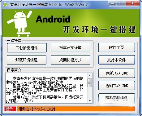 安卓开发环境搭建是一款拥有图形界面的快速搭建android开发环境的绿色软件。