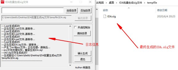 日志信息,最终生成的IDA.sig文件