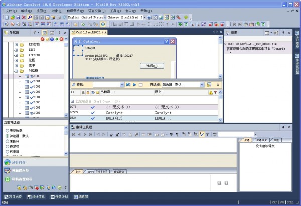 Alchemy Catalyst是一款与 Visual Localize 相似的功能强大的可视化软件本地化工具。支持 VC、VB、.NET、文本等软件的本地化,对于常见的*.exe、*.dll、*.ocx、*.rc、*.xml等文件格式都能提供很好的支持。