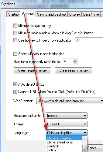在General选项卡里的Lauguage先Chinese