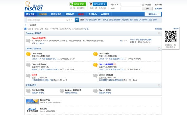 Discuz! 是康盛创想(Comsenz)推出的一个以社区为基础的专业建站平台,让论坛(BBS)、个人空间(SNS)、门户(Portal)、群组(Group)、应用开放平台(Open Platform)充分融合于一体,帮助网站实现一站式服务。