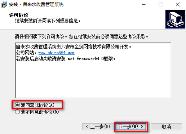 1、双击应用程序“自来水收费管理系统-setup.exe”,进行安装