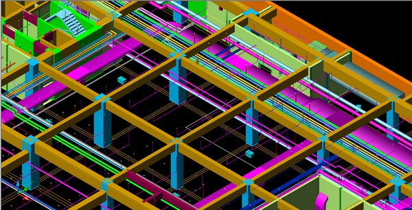 针对预算中不同专业的划分越来越细,不同专业的模型通过对应专业软件分别进行建立模型,土建软件中的模型可直接导入安装中方便模型的定位,土建安装模型合并内部构造一览无余,构件与构件之间的碰撞点位置直观可见,快速进行调整;构件排布位置,距离清晰明了。