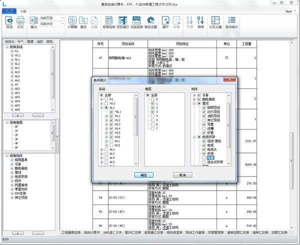 条件统计功能:支持统计任意楼层,任意编号,任意构件种类的工程量,可以实现实物量的短周期三算对比,这对于控制“飞单”这一利润漏洞、实现精细化管理起到非常大的作用。