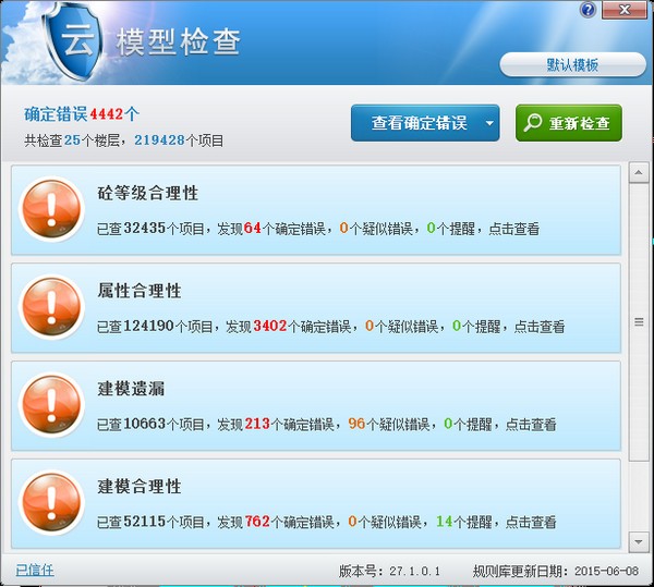 云模型检查汇集了数百位专家的知识和经验,可动态更新数据库,为你的工程实时把脉,避免因少算、漏算、错算带来损失和风险。同时,Luban云模型检查通过主动提供依据在部分条目错误附上依据原理,让您错的明白,改的放心;初学者不用翻资料查图集找规范,学习更轻松;支持反查到构件图形或属性,部分疑似错误支持一键自动修复,查找与修改更便捷更高效;根据工程实际情况用户自行设定信任规则和错误忽略条目,信任的规则和忽略的条目不再检查,减少疑似错误条目检查,提高检查效率;对错误类型进行了分级,错误类型分为“确定错误”“疑似错误”“提醒信息”,大幅度减少疑似错误项目;支持模板将您想要的检查项目、检查条件存储在云端,方便随时调用。同时鲁班软件为您仔细研究各地不同的检查要求,集合专家意见,逐步开放鲁班检查模板并实时更新。