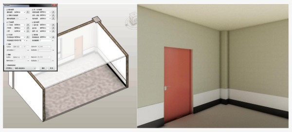 房间装修可一键生成整个房间的墙面、天棚、梁柱面装饰、踢脚、墙裙等,并能根据实际工程设置门窗内外侧的不同做法,同时饰面支持出量。