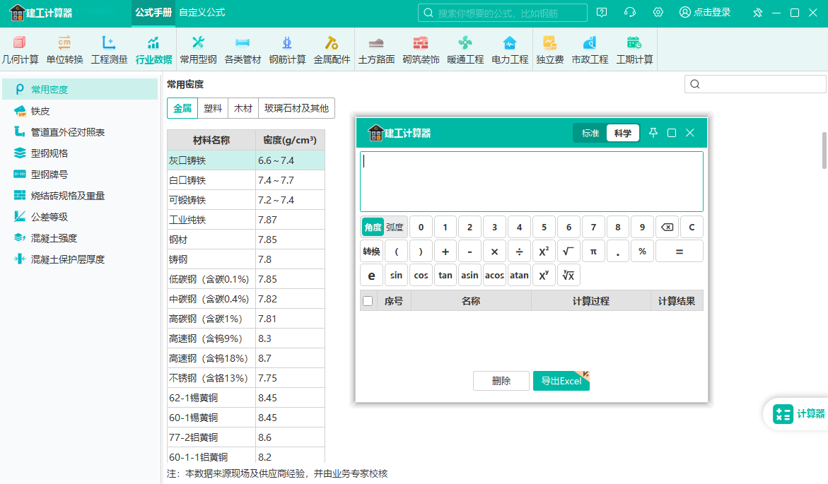 内置大量建筑行业各类专业公式,公式类型应用尽有,输入参数瞬间秒级计算