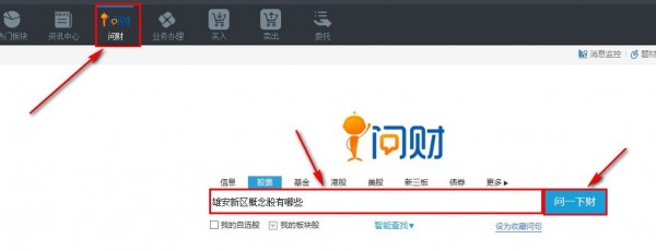 5.问财功能,点击顶部菜单栏“问财”,跳转问财网页,输入问题,单击“问一下财”