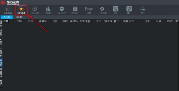 2.点击顶部菜单栏“我的股票”查看持有股票