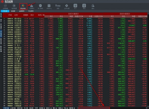 3.点击资金流向查看深沪A股股票的涨幅情况,拖动下方拉条查看更多信息