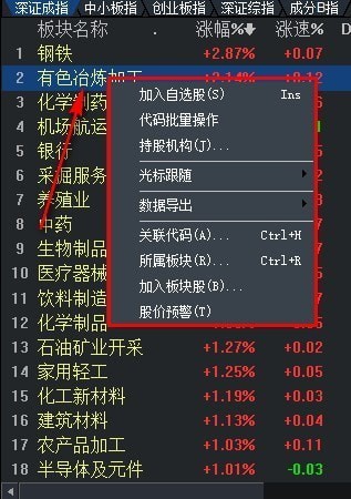 9、可以对不同的板块查看,显示多个行业的涨幅情况