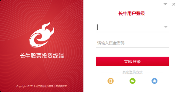一、下载长江证券长牛股票投资终端,进入登录界面,在登录界面用户可以选择使用微信QQ快捷登录。