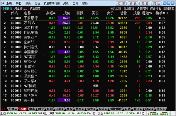 快速选股、选指标功能,首创拼音代码查询技术(键盘精灵),使用股票名称拼音首字母编码,可以方便地查找到股票;使用指标的英文缩写名,可方便地找到所要指标;同时还支持拼音选板块和拼音选功能,如WT即委托,FXT即进入分析图。