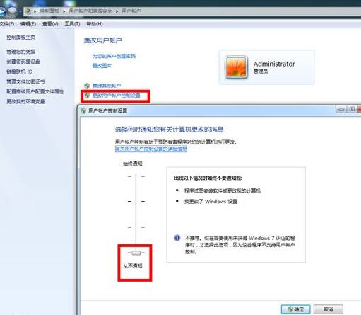 所以先确认您是什么系统的,如果是xp请您看下是不是以管理员身份登录的,如果是win7系统,请您点击桌面我们软件的图标按右键,选择以管理员身份运行看下;进入控制面板-用户帐户-更改用户帐户控制设置,将UAC降低到从不通知,重启电脑设备。