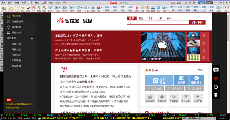 同花顺炒股软件是为个人投资者研发的一款综合金融服务终端,聚集了国内众多炒股高手的免费炒股软件,行情稳定快速,免费提供实时全球股票行情、外汇行情、股指期货、商品期货、债券、期权、基金,支持券商闪电交易和模拟炒股功能。