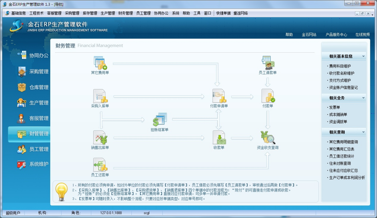 与传统财务软件相比,金石ERP生产管理软件以实际到货、出货核算往来,解决了财务软件以“发票”核算应付应收的对账缺陷。并且软件可以将企业所有管理岗位上人员参与到本系统中,在整个业务流程链上让每个参与者充分发挥出自己的价值,让工作衔接更加高效、劳动价值有据可查,工作资料全部纳入公司信息化资源中,不因人员离职导致资源缺失,所以说在内账业务处理模式上金石ERP生产管理系统要优于传统的财务软件。