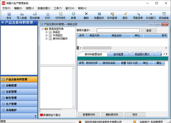 鸿富兴生产管理系统是一款集成品、原材料、生产单、工序、工资、原材料进销存、财务于一体的软件,界面简洁,操作简单,需要的朋友快来下载吧。
