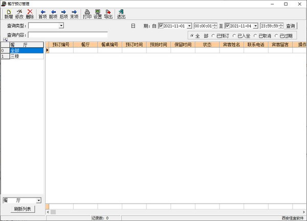 “餐桌信息”登记餐厅、餐桌档案的详细信息,例如:餐桌编号、餐厅、容纳人数、最低消费、餐桌状态和备注。