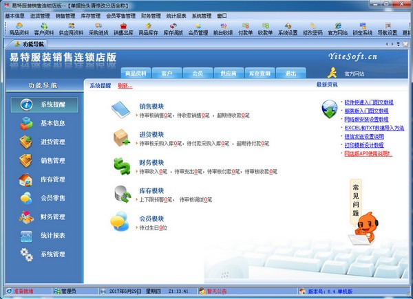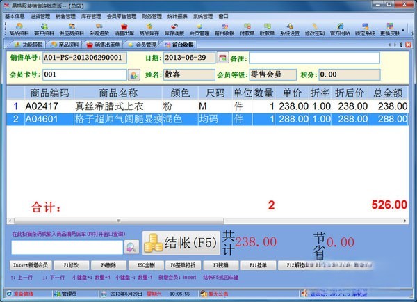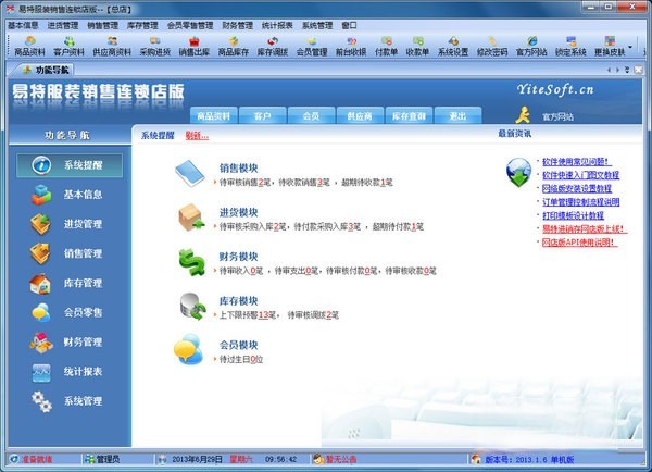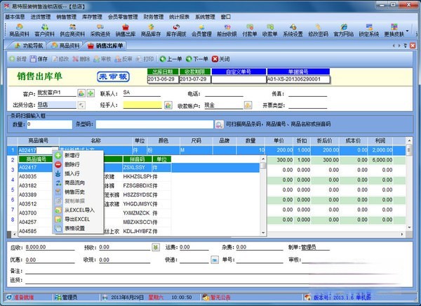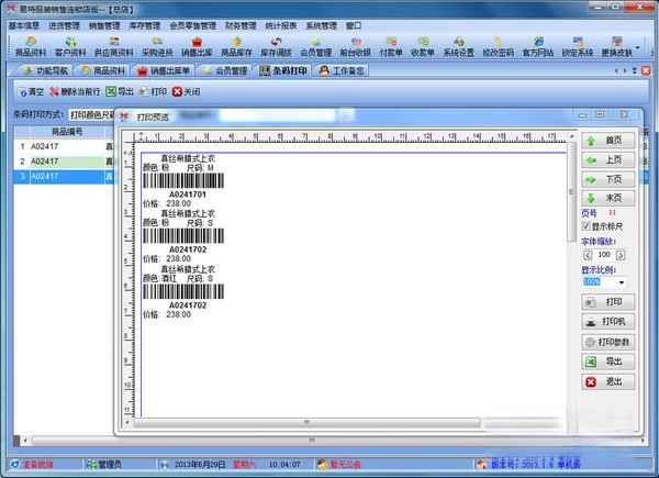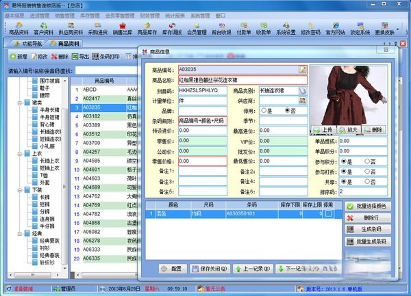 易特服装销售软件连锁店版是一款最具有市场潜力的服装销售软件,结构明晰,操作简单,对店铺商品的进销存能很好地管理,让你的经营帐目清清楚楚.独创的颜色尺码处理技术,可以轻松应对各种颜色尺码。