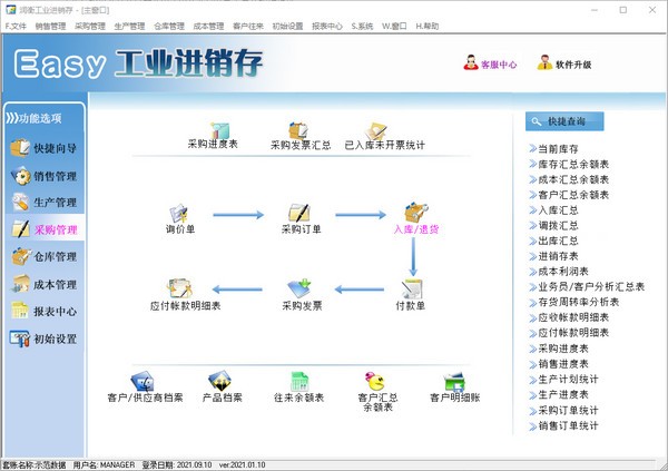 适用范围:工业企业生产流程物料核算管理,适用于大型工业生产企业的进销存管理。