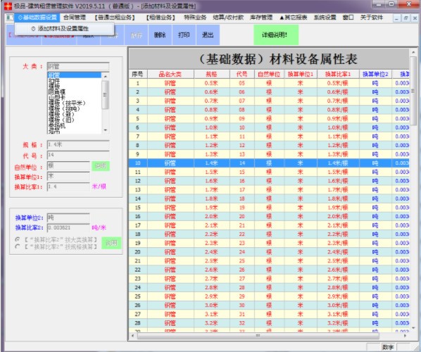 ①添加材料及设置属性一一[首先]添加您公司的材料/设备,或修改各材料/设备的属性;