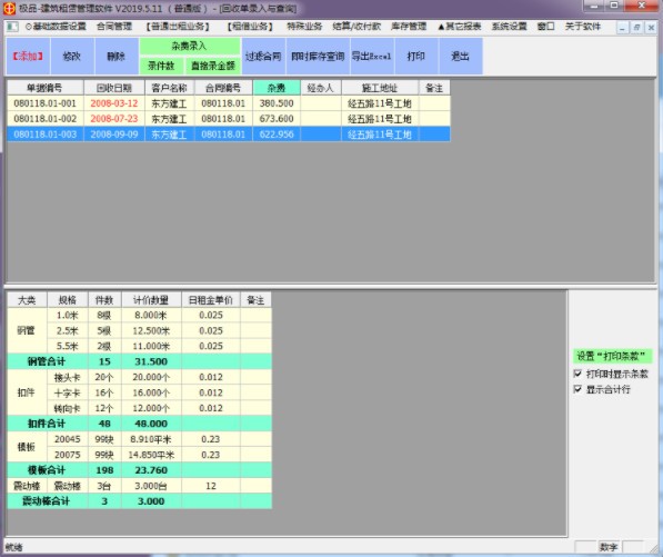 极品建筑租赁管理软件是一款实用的钢材租赁管理软件,该软件可以帮助用户轻松管理每个客户或全部客户的租赁明细,方便用户了解客户租还情况,提高办事效率,有需要的朋友快来下载使用吧。