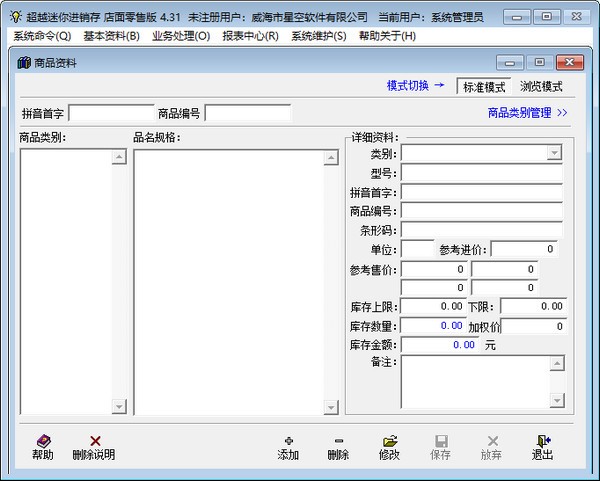 1、定位清晰:自设计规划阶段,我们就明确定位于普通的个体零售商户。为他们度身定制,量体开发。如市面上几乎所有的进销存软件的在设计时的定位大概都是按单操作的商贸公司或者工业企业。业务处理都以单据的形式来体现,例如采购单、销售单。每个单有单号、开单人、备注等若干选项。而这些东西往往会使电脑经验不多的普通用户眼花缭乱,一头雾水。我们针对零售业一般没有按单销售的这个特点,取消了这方面的功能。这样,不但用户感觉容易上手多了,而且上手后的管理难度也大大减轻了。