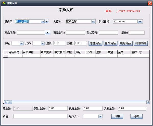 进货管理:进行商品采购入库,采购退货,进/退单据和当前库存查询,与供货商的往来帐务。