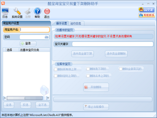 酷宝淘宝宝贝批量下架删除助手可以帮助淘宝掌柜进行宝贝批量下架,删除,可进行关键字设置,只处理有关键字的宝贝,这样就可以有选择的进行操作,操作简单,有操作日志可以时时监控软件运行的状态,通过使用本软件,可大大节省工作量,提高工作效率。