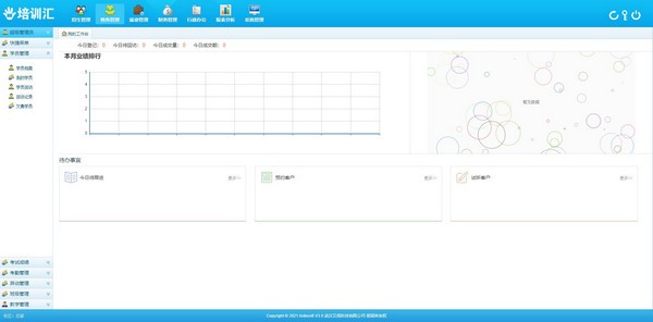12、全方位的实时报表分析,覆盖营销、招生、教务,财务和就业等各个维度,让管理者对机构的运营一目了然。