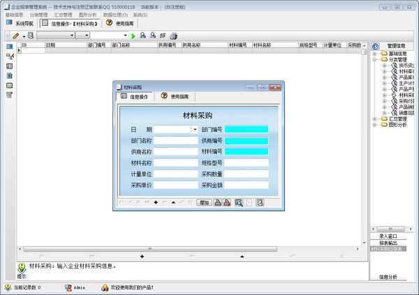 企业报表管理系统是一套对生产计划、产品产量、材料采购、付款金额、产品销售、销售回款、货币资金、当前库存等方面进行全面管理的计算机管理软件。该系统采集企业生产经营过程中所产生的各种原始数据,根据生产经营管理的要求,对原始数据进行录入、分类、汇总、分析,及时准确地提供各种信息数据,使经营者随时了解经营状况,做出正确的经营决策。信息分类方便,树形管理简单。操作快捷、方便,性能高效、强大;使用易懂、易会。别开生面的查询统计为您提供了更多的方便!可以解决统计部门的工作人员需要耗费大量的精力来收集、整理和统计分析,数据采集困难、效率不高、准确率不高等问题。