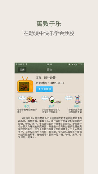 2:同花顺重金打造的炒股学习动画片“ 股林外传”:寓教于乐。与故事中的主人公驴妈、熊仔和牛叉一起体验炒股过程中的酸甜苦辣。