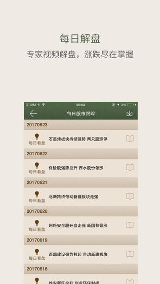 1:每天实时更新:12年经验的同花顺金融研究中心的特聘讲师们,每天视频解盘、分析当前股市热点,并提供每日一招经验传授: